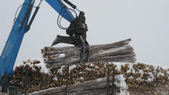 Les grappins à talons jumelés de Rotobec sont une excellente solution pour le chargement et le déchargement de bois en longueur.