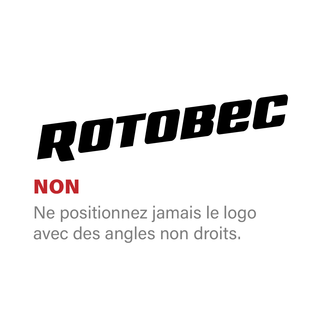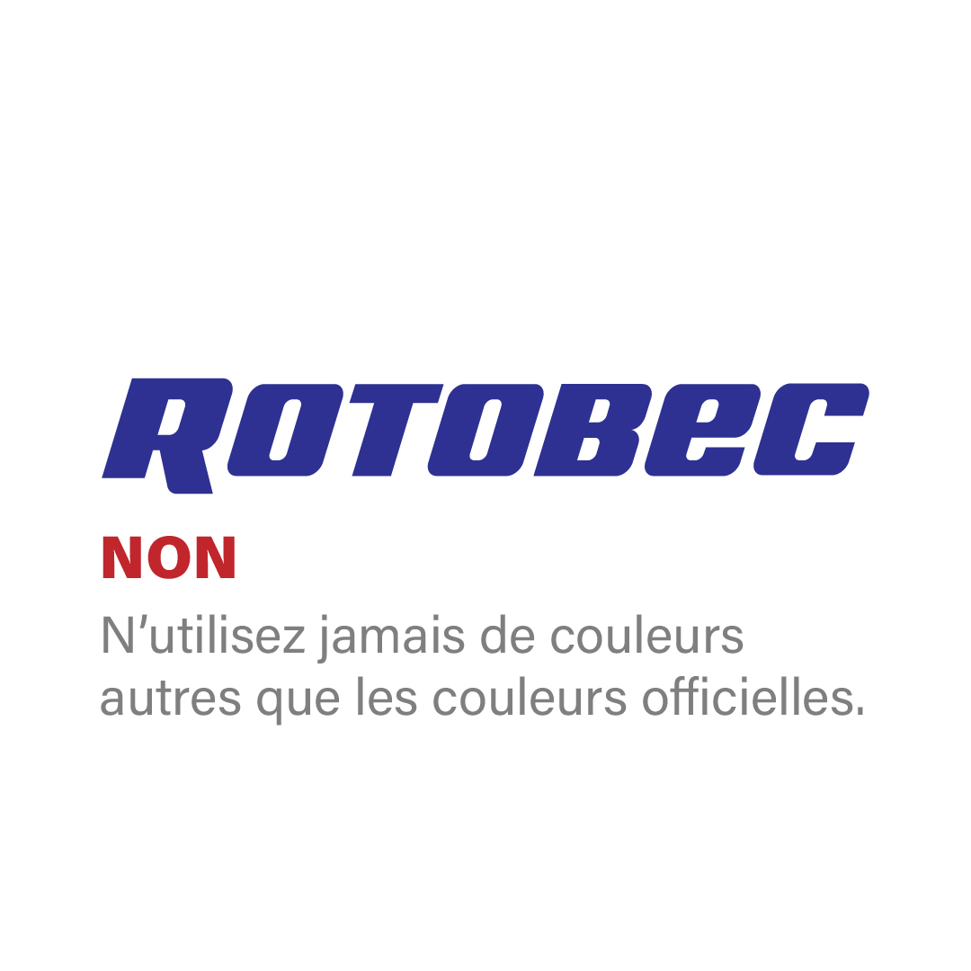 Évitez d’appliquer le jaune Rotobec directement sur le logo ; il est réservé aux arrière-plans, accents et éléments graphiques de soutien.